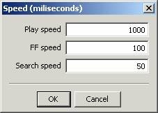 In this screen you can setup the speed used for different functions when you display calls from a log file. Play, Fast Forward and Search functions are controlled by the Speed timers. All the speeds are in milliseconds and represents the duration of an event. If for example the Play speed is 1000 ms, this means that the application will play one event every second.